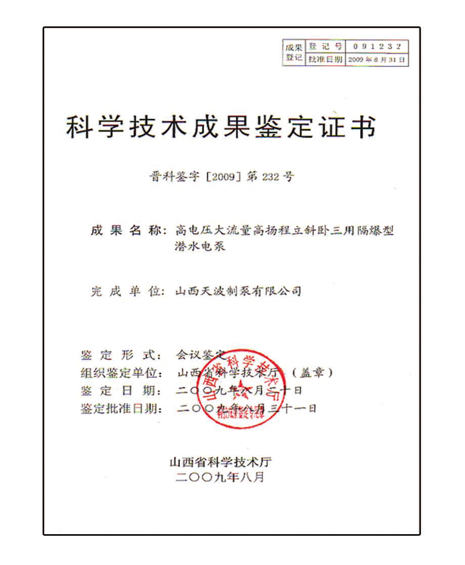 公司立斜臥三用隔爆型潛水排沙電泵科技成果簽定會(huì)